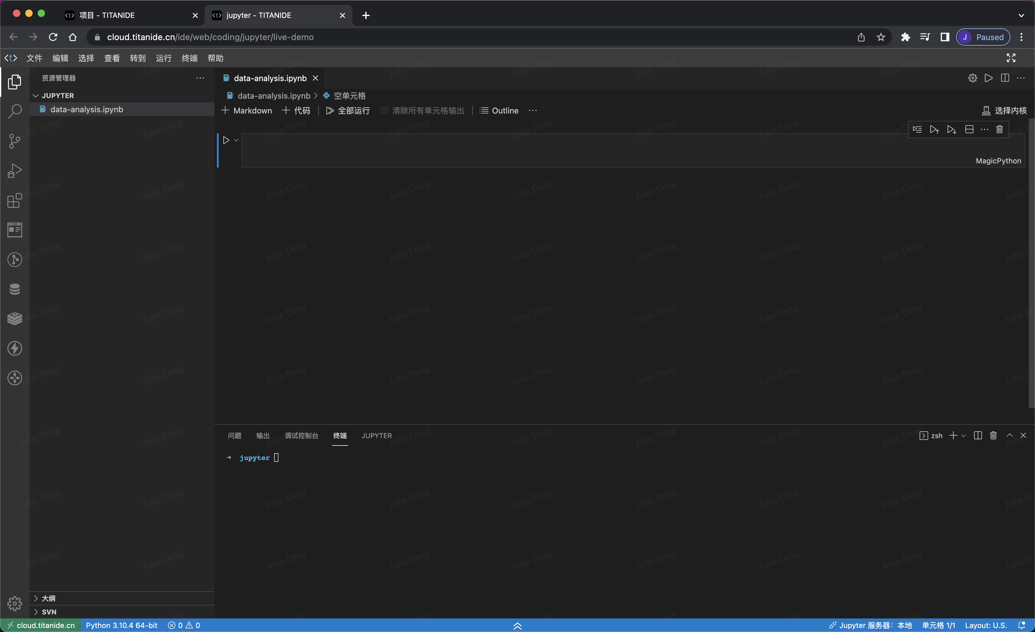 通过本文提到的方法,您可以在 15 分钟内快速的通过 TITANIDE (在线IDE)提供的开箱即用的 Python 模板,创建 Jupyter Notebook 实现数据分析。